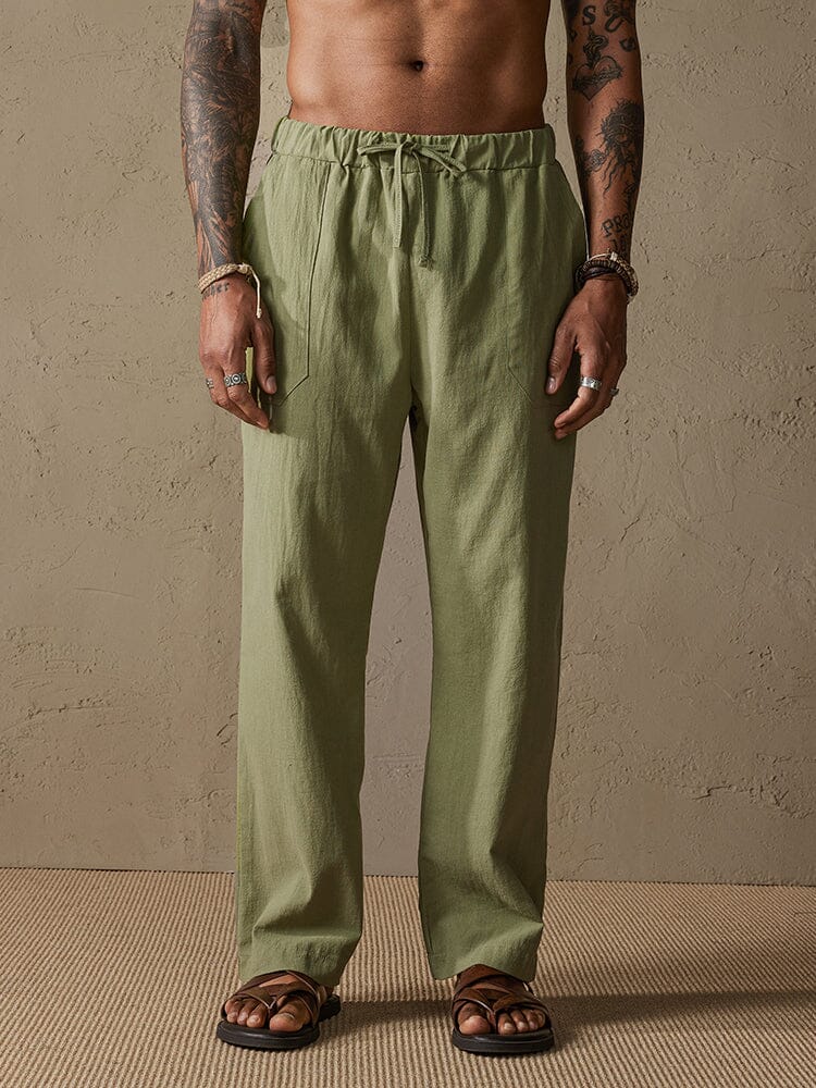 Casual Solid Elastic Waist Cotton Linen Straight Pants