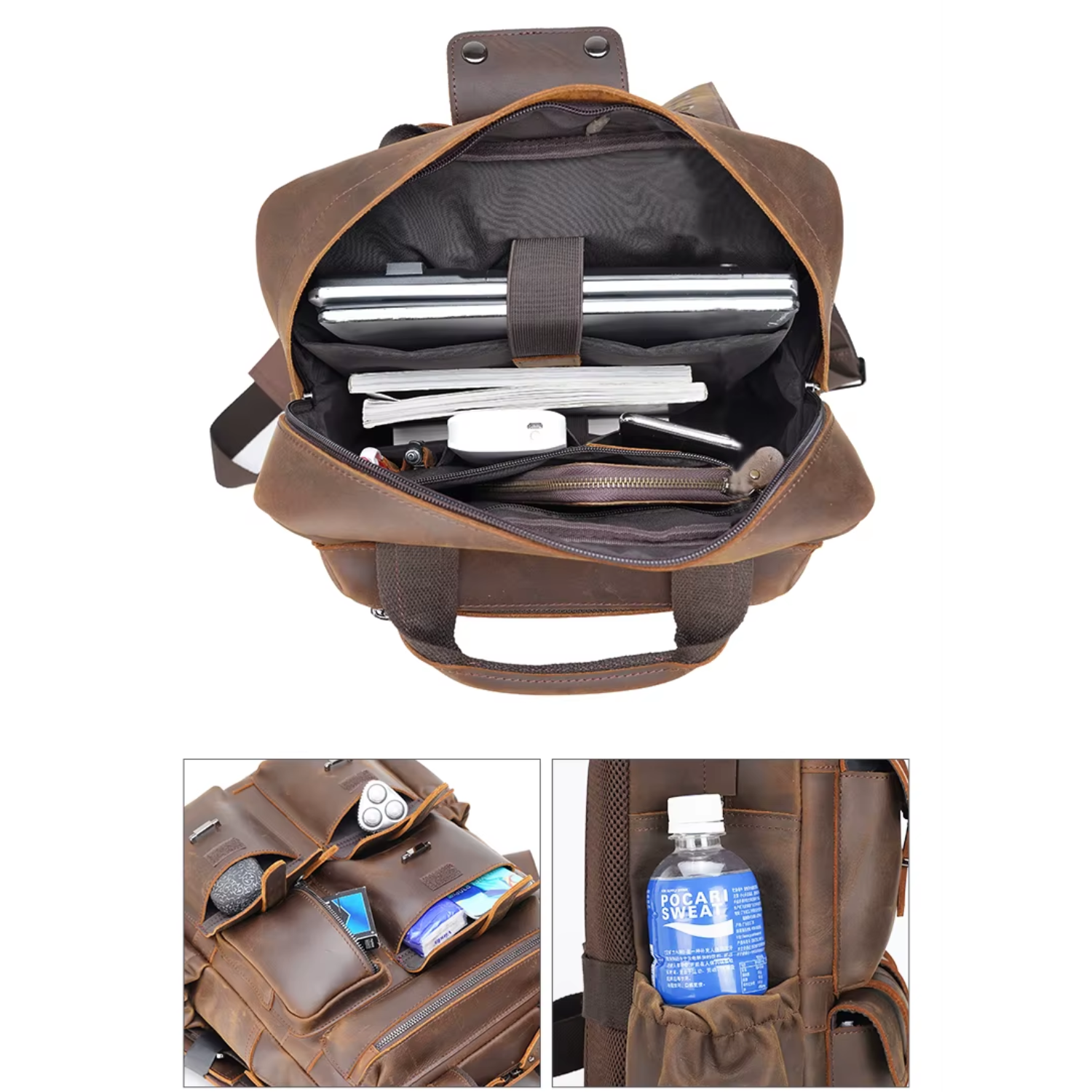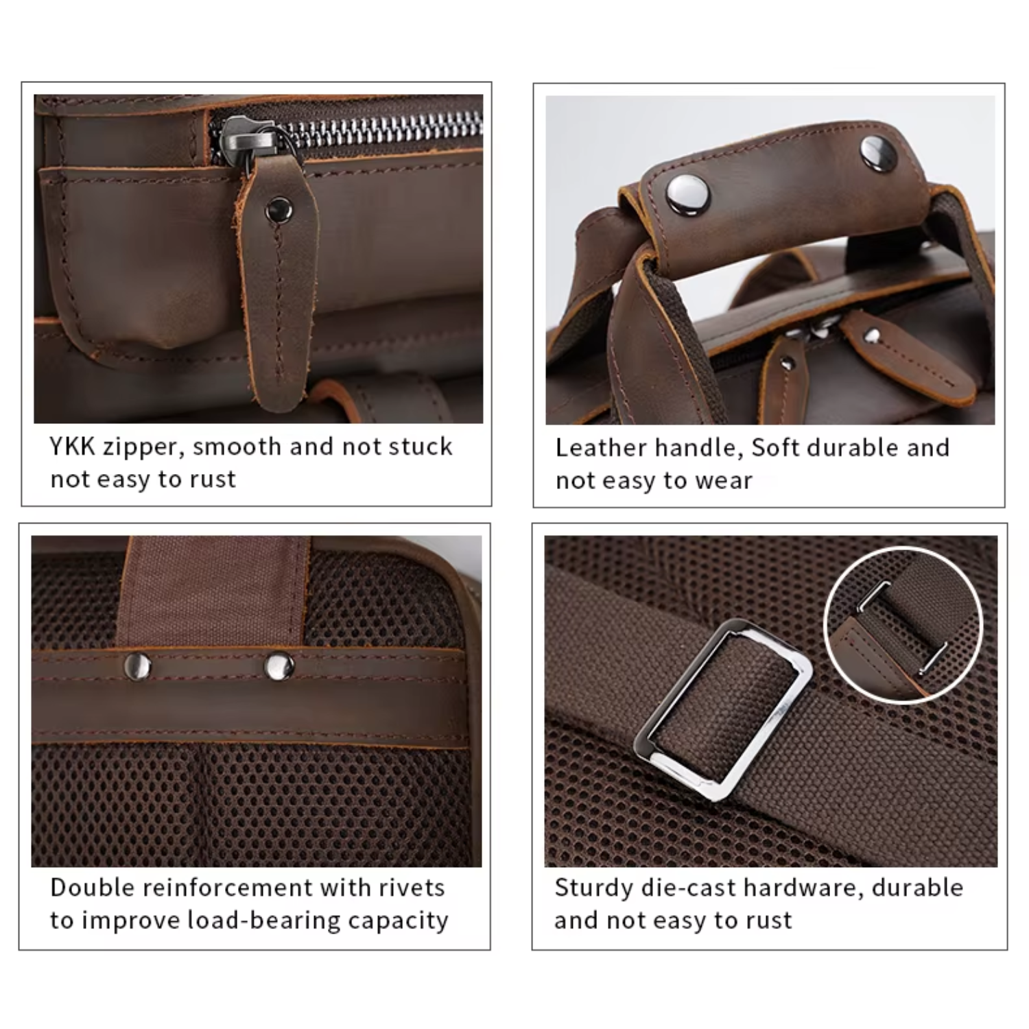 Lernen Sie Davos kennen, einen hochwertigen Leder-Rucksack, der für Abenteurer entwickelt wurde, die Sicherheit, Langlebigkeit und Stil priorisieren. Hergestellt aus echtem Rindsleder, ist dieser Rucksack sowohl diebstahlsicher als auch wasserdicht, was ihn zum perfekten Begleiter für Wanderungen, Reisen und den täglichen Pendelverkehr macht. Davos ist vielseitig und bereit für jede Reise, die Sie antreten.