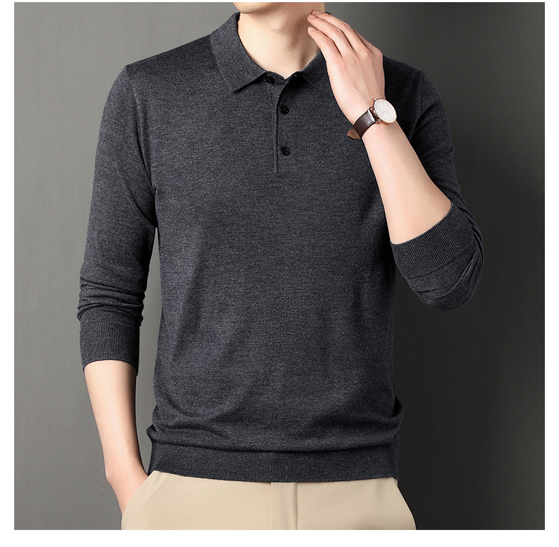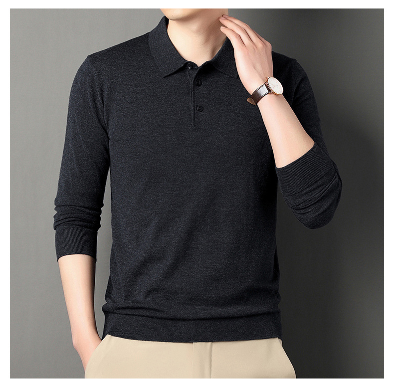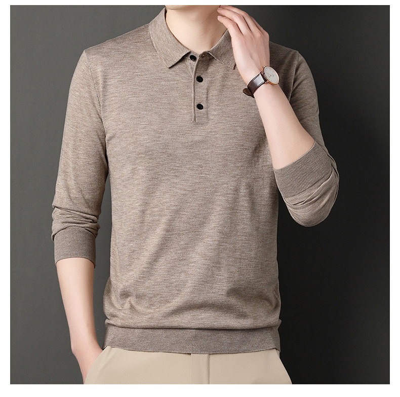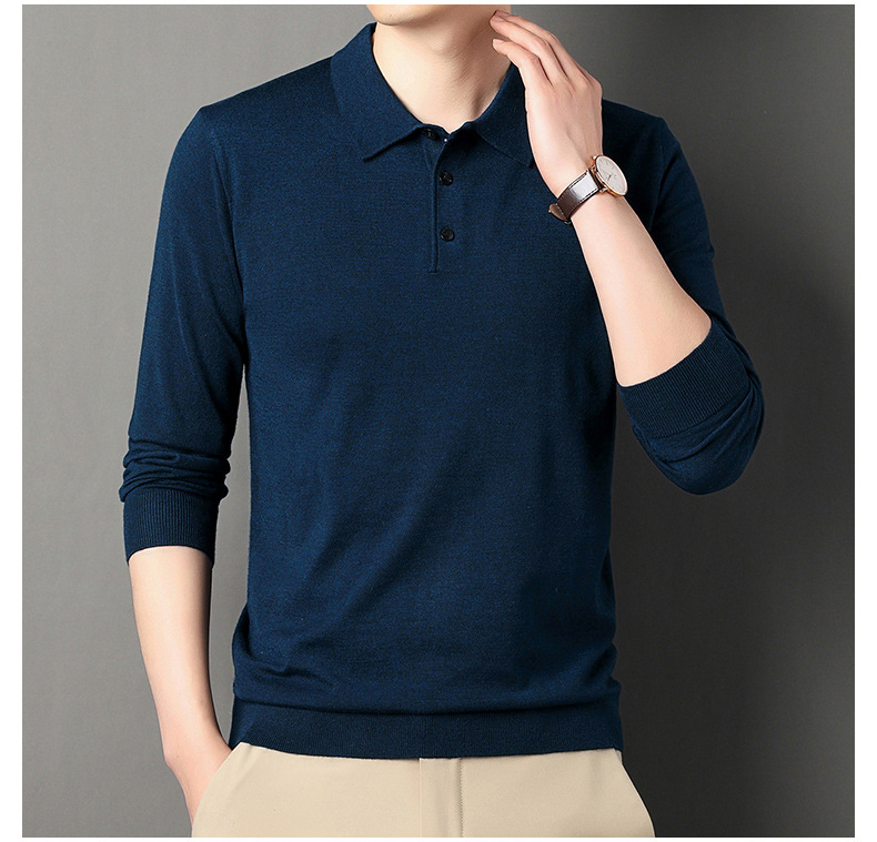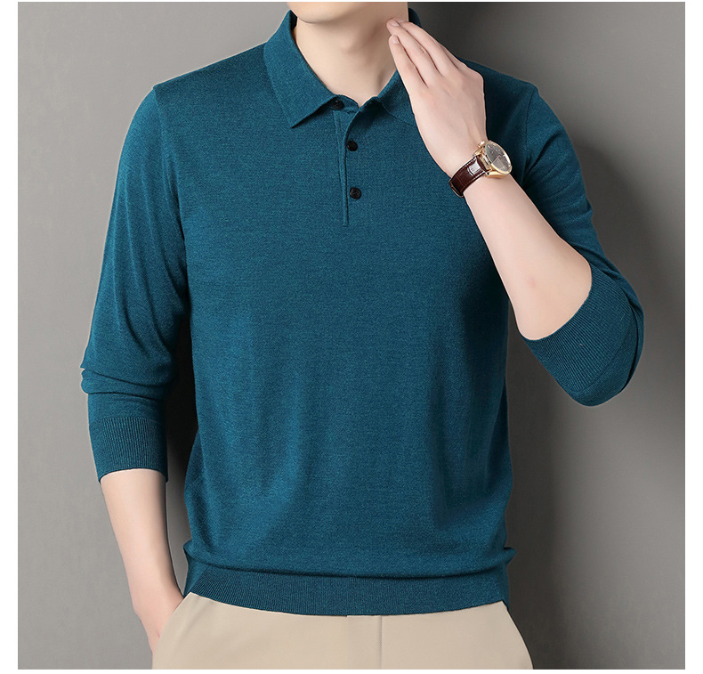 Men's wool knit polo shirt for spring and autumn (containing mulberry silk)