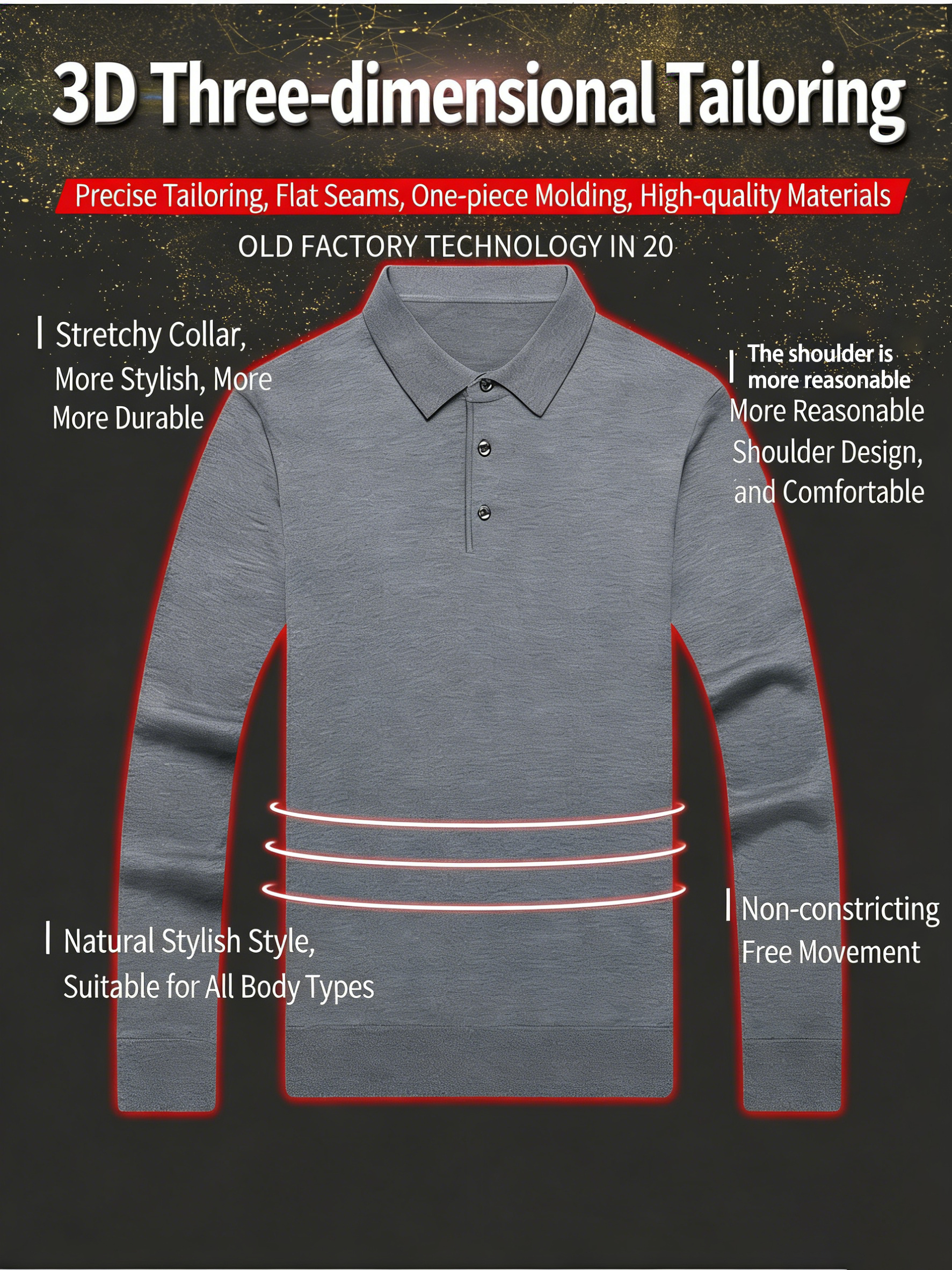 Designed for mature men who are tired of stiff collars, tight sleeves, and cheap fabric.