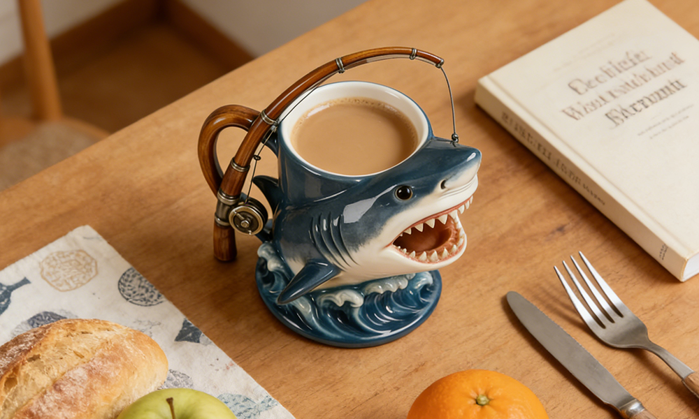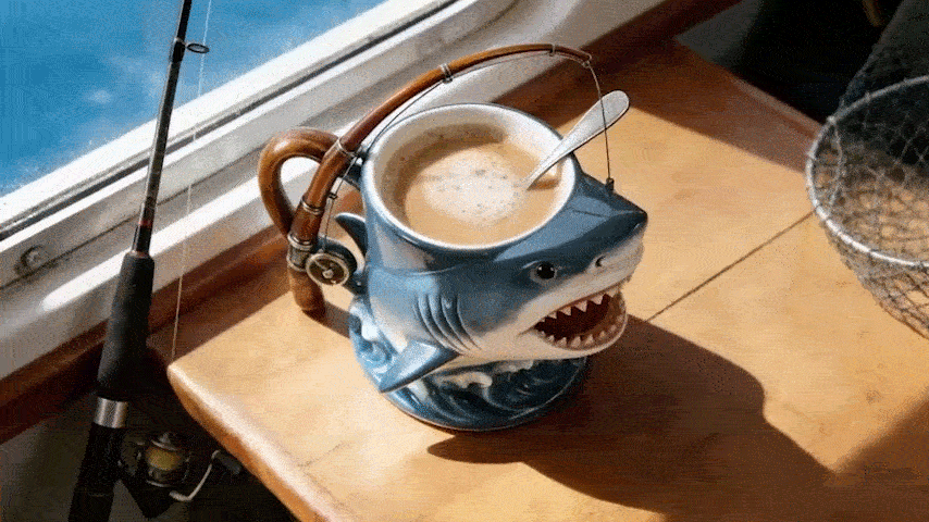 „Diese Tasse ist reines Glück“, sagte mein Vater.„Wünscht sie mir nicht den größten Fang? Ich werde hart arbeiten, um einen Hai zu fangen – nach 20 Jahren Angeln habe ich es verdient.“