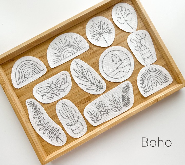 Diese Designs sind perfekt für Kleidung, Canvas-Taschen, Stickrahmen oder praktisch alles, was Sie nähen können. Einfach die Rückseite abziehen und auf den Projektbereich kleben, dann mit dem Nähen beginnen! Nach Abschluss das Papier durch Eintauchen oder Abspülen in warmem Wasser auflösen, sanft abwischen und trocknen lassen.