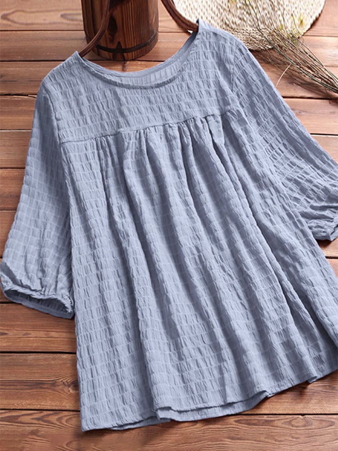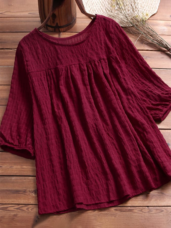 Solid Cotton And Linen Round Neck Casual Top