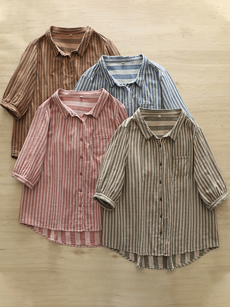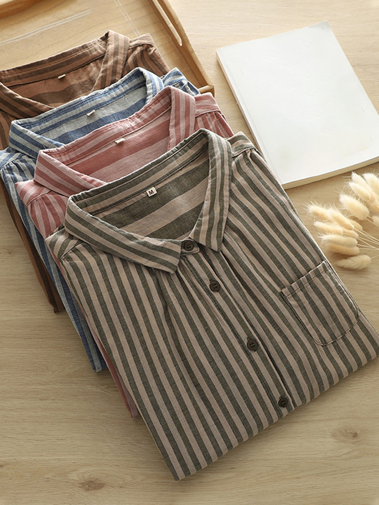 Women's Vintage Striped Linen Blend Casual Shirt