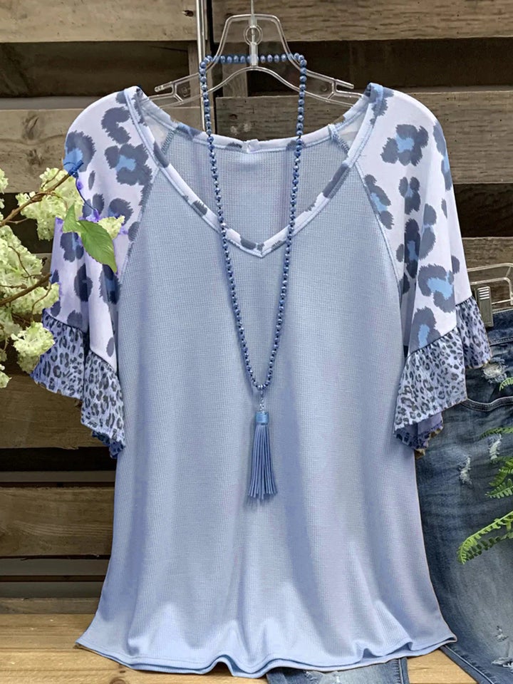 Short-Sleeved V-Neck Printed Casual Top