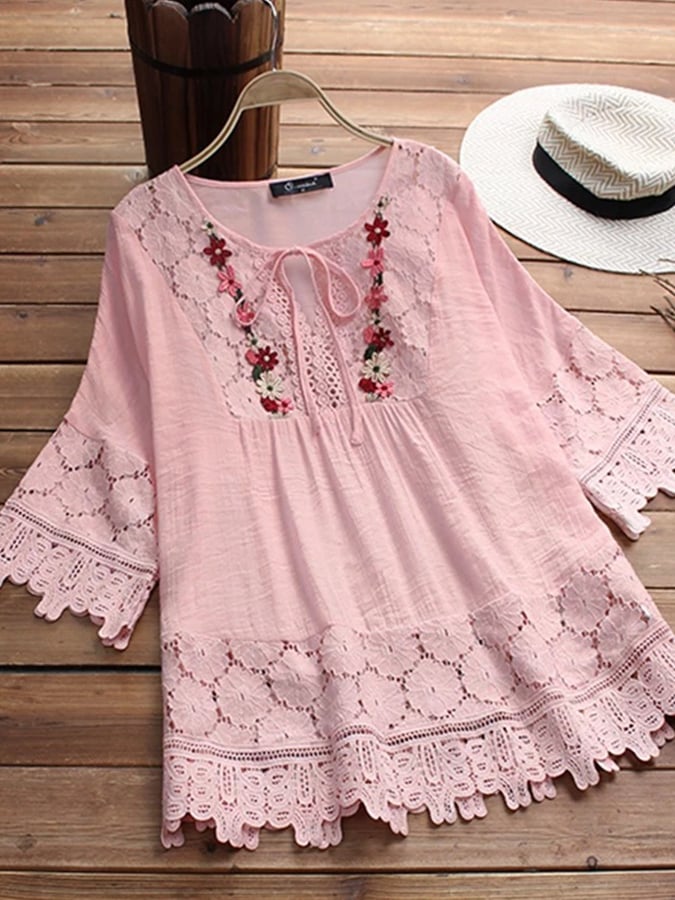 Women's V-Neck Lace Embroidered Shirt