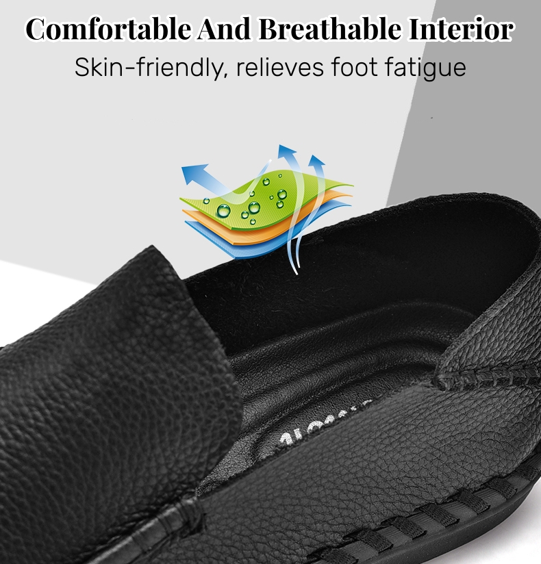 - 【ALL-DAY COMFORT】Comfymore™ slip on shoes for men are made of premium genuine leather on the uppers, which can be worn as daily casual looks and show the unique charm of men at the same time. The interior is skin-friendly, you will feel comfortable even after long hours of standing or walking. In addition, a special wider forefoot design frees up your toes to stop feeling cramped!