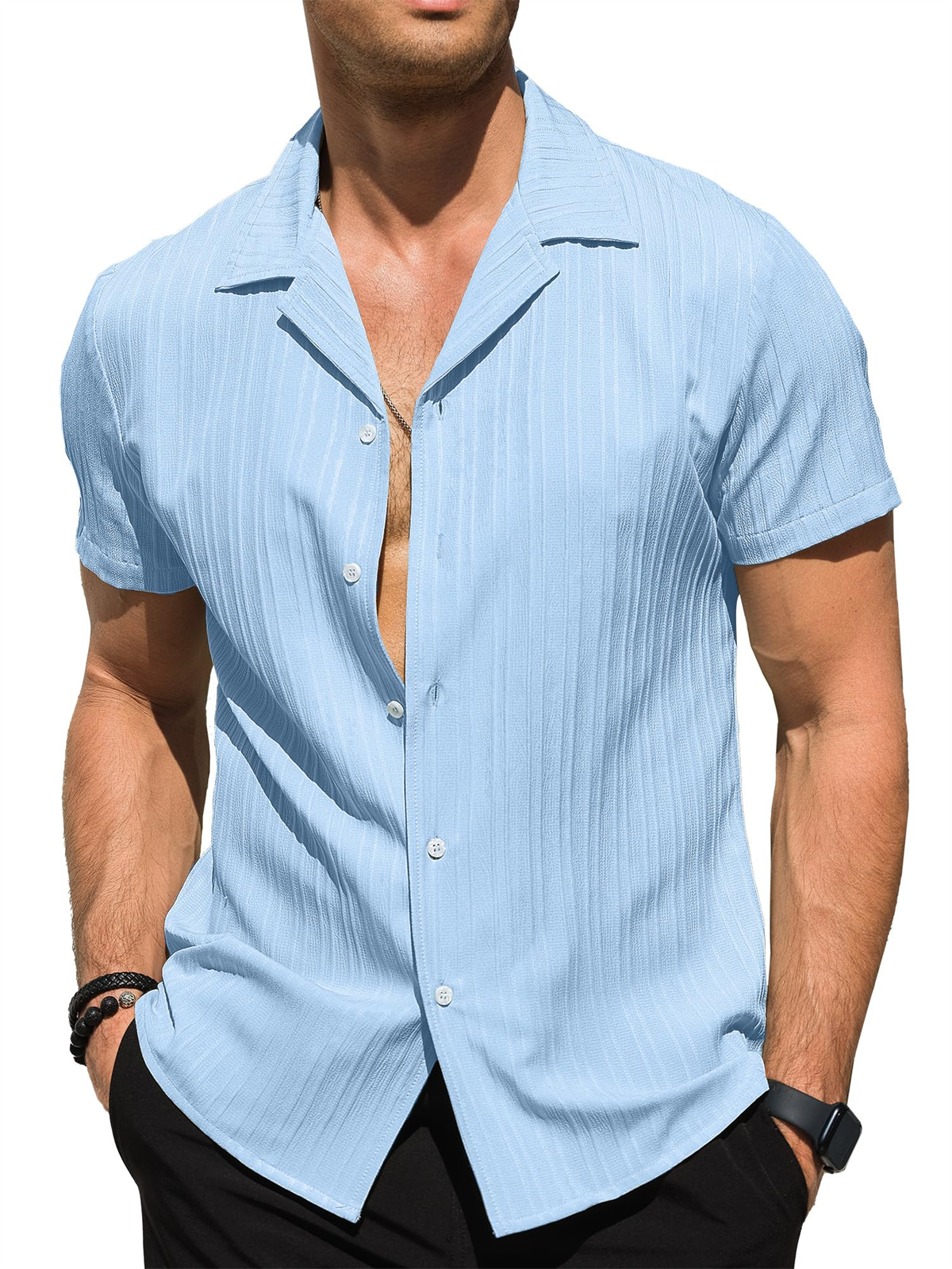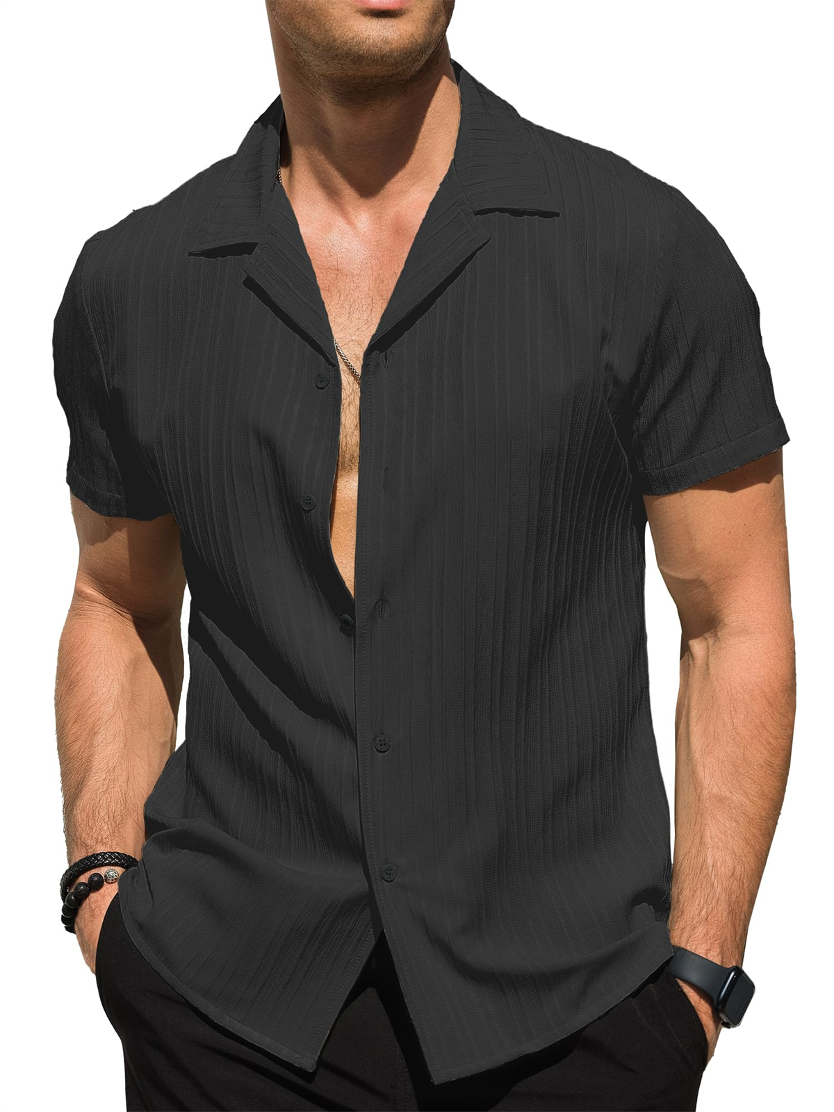 Men's Cuban Collar Jacquard Casual Basic Short-sleeved Shirt