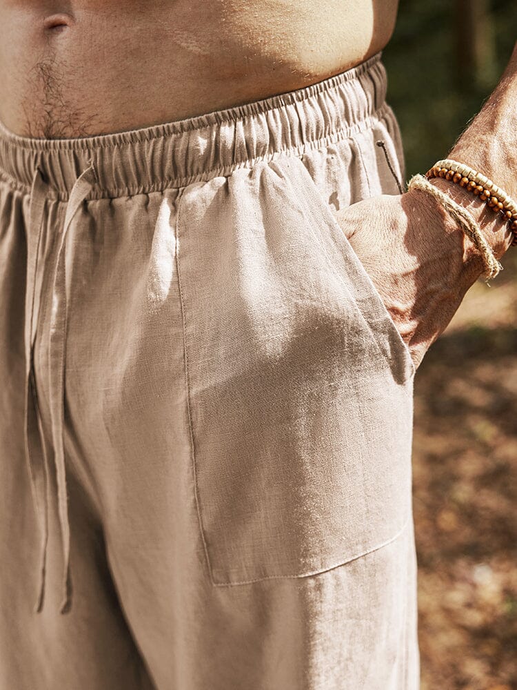 - Details: Straight linen pants with side hand pockets, elastic waistband and adjustable drawstring.