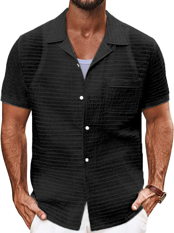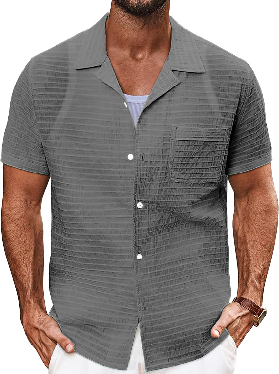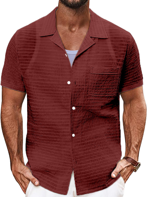 Men's Casual Everyday Solid Color Plaid Short Sleeve Button-down Shirt