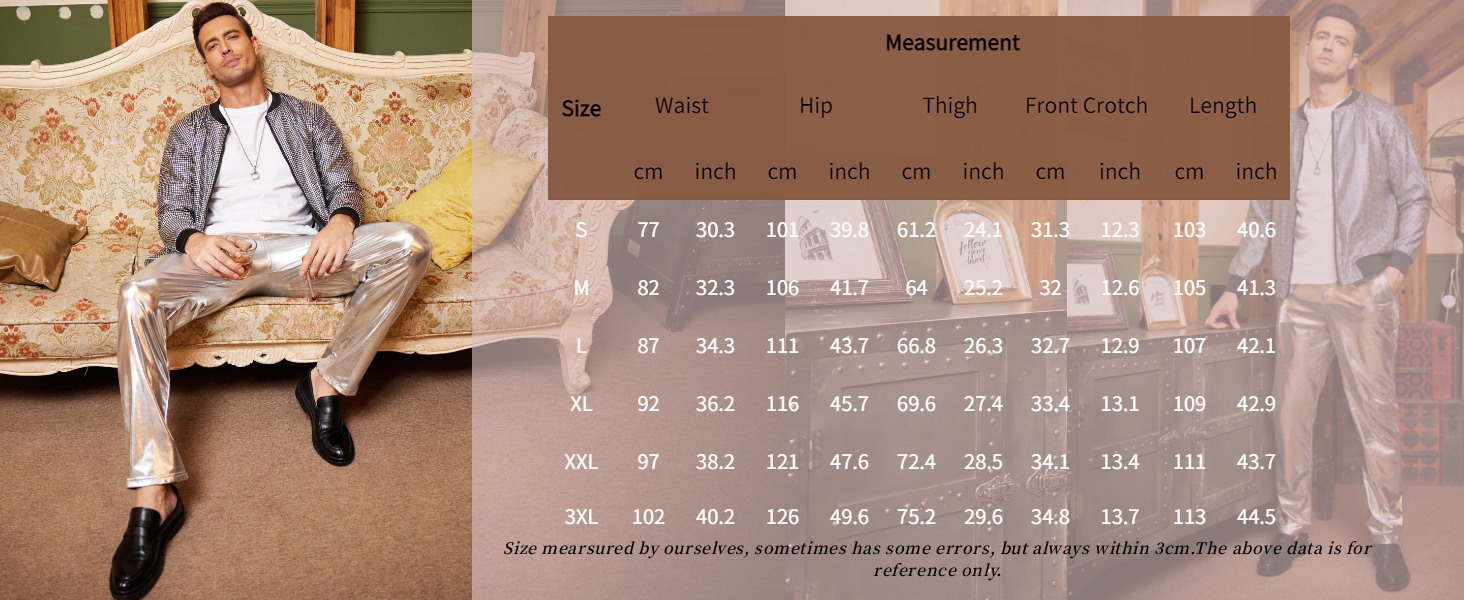 • Design: Straight Leg, Lightweight, Classic four pockets styling. Shinny under the light. Metallic shiny pants.?