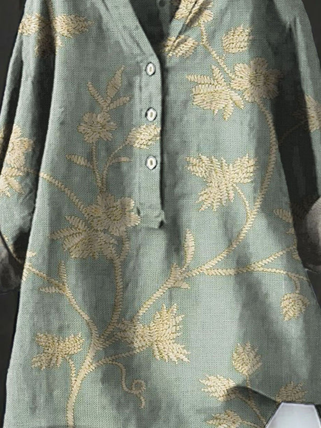 Women's Vintage Floral Art Print Casual Shirt